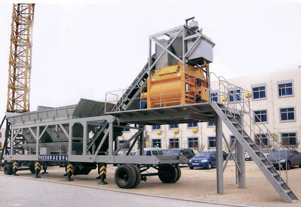移動式混凝土攪拌站就是把上料、儲料、攪拌和卸料等一系列的裝置都組合安裝到一個底座上的方式。